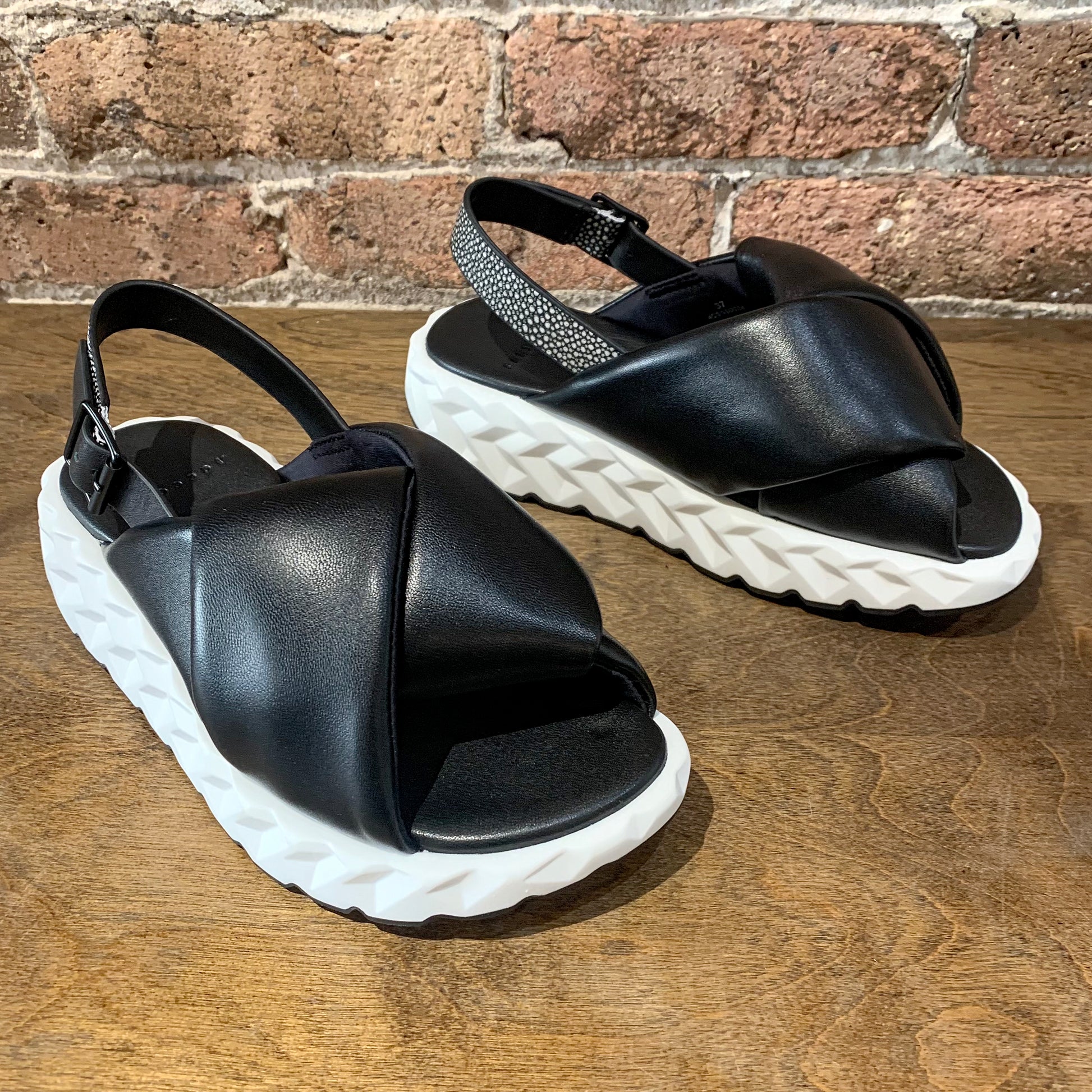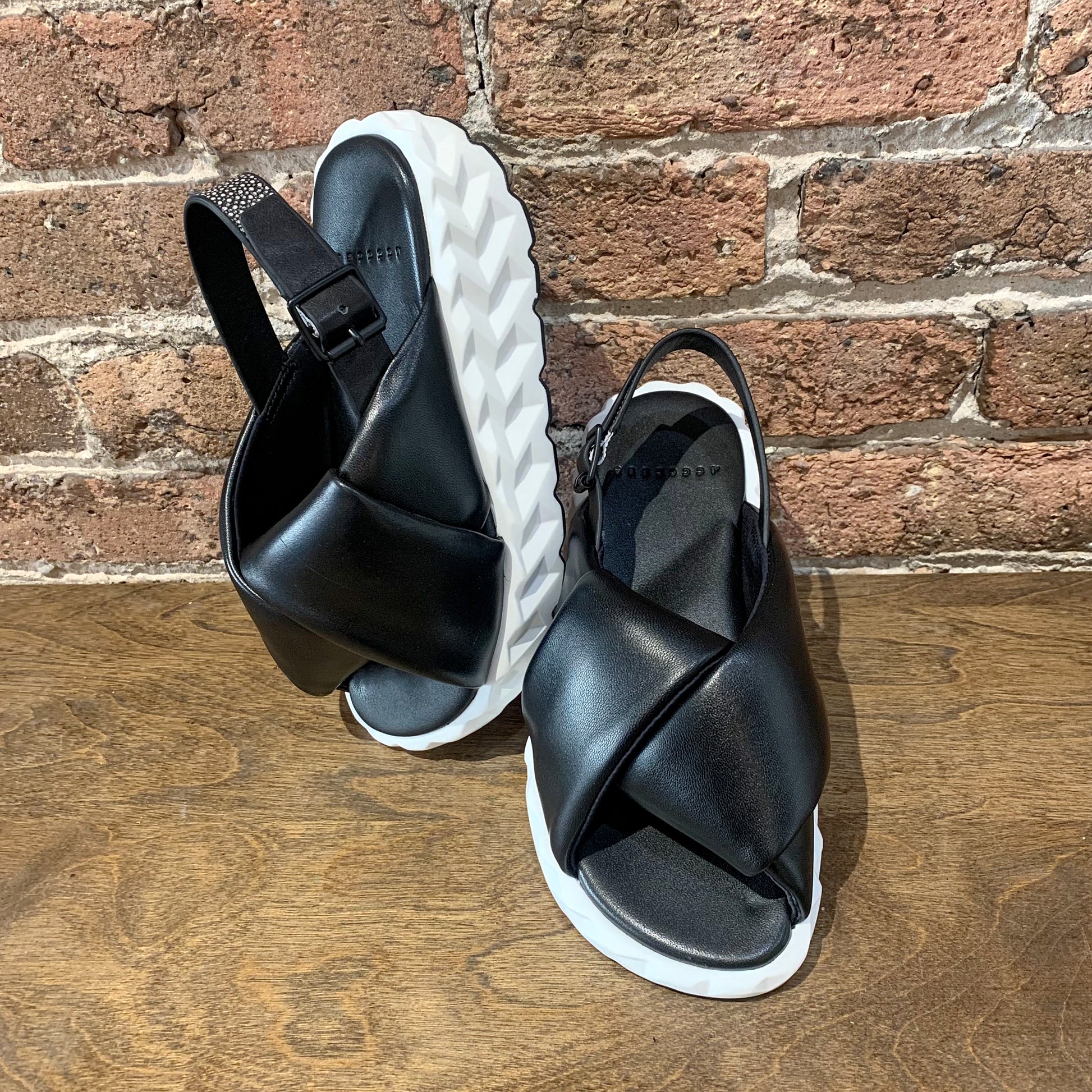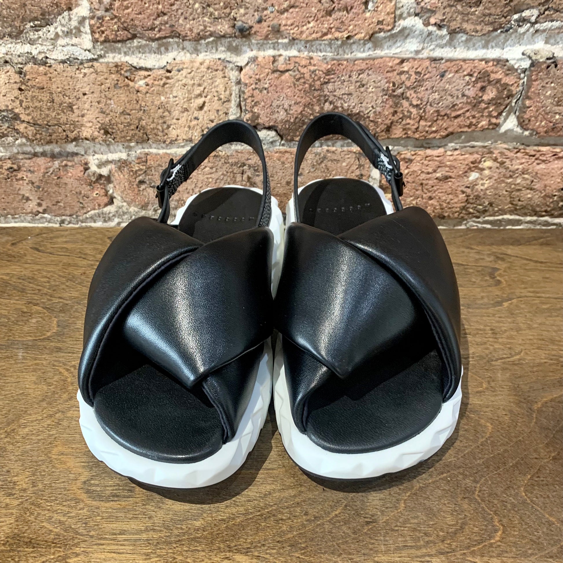 Jabara Coil is a slingback sandal crafted in beautiful black sheep leather resting on a sporty cushioned outsole. The puffy knotted upper & the contrast of white sole brings a chic allure to the overall design.
