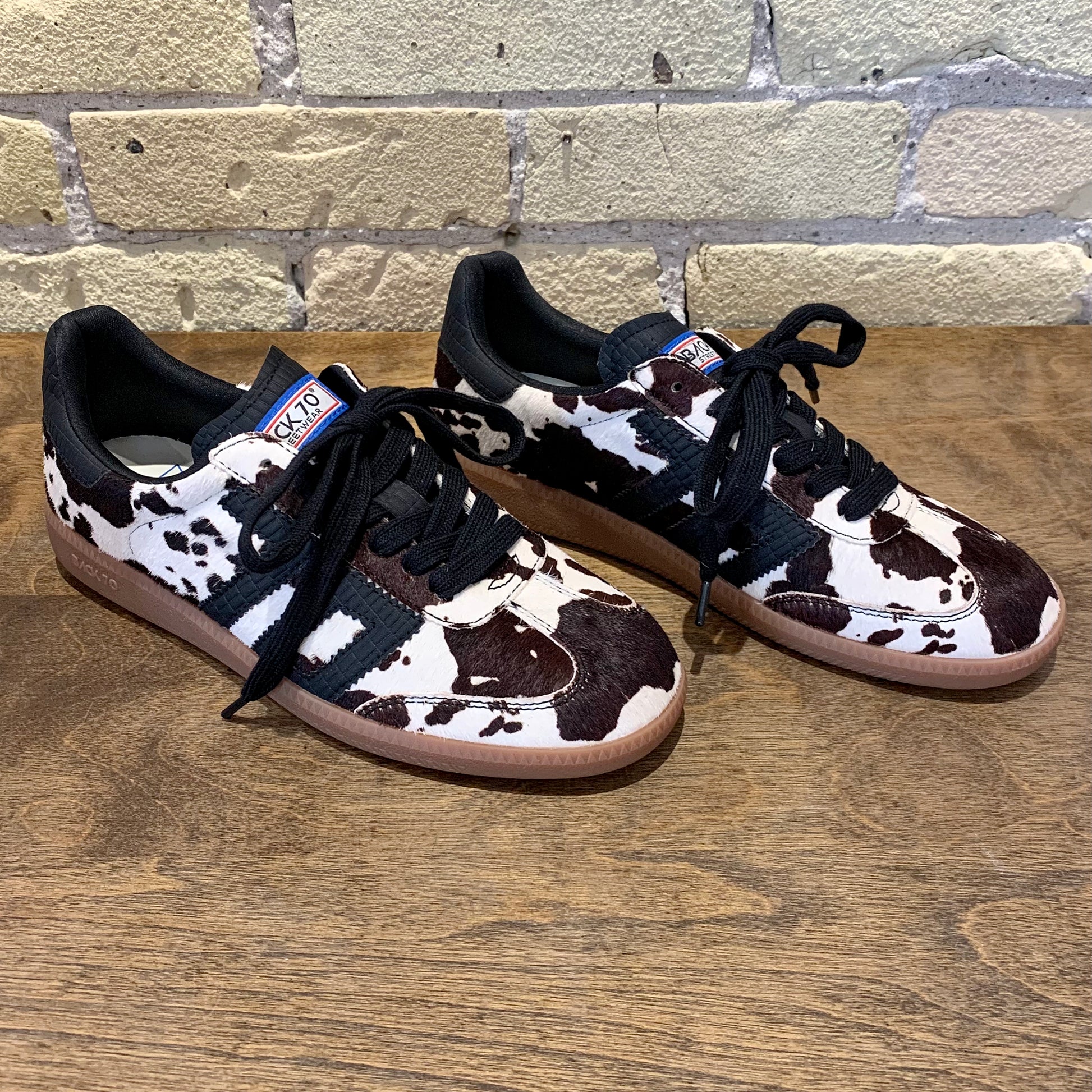 Cloud CL makes a bold move with the fashion scene in brown cow print - equal parts playful and elevated. Crafted in genuine leather with vintage design cues like a gum rubber sole and contrast suede toe, it's giving statement sneaker energy with a western twist. The iconic Back 70 mark shows its heritage roots, making it a standout for city days or country weekends. If you've been searching for signature brown cow print shoes or accessories, here's your sign.