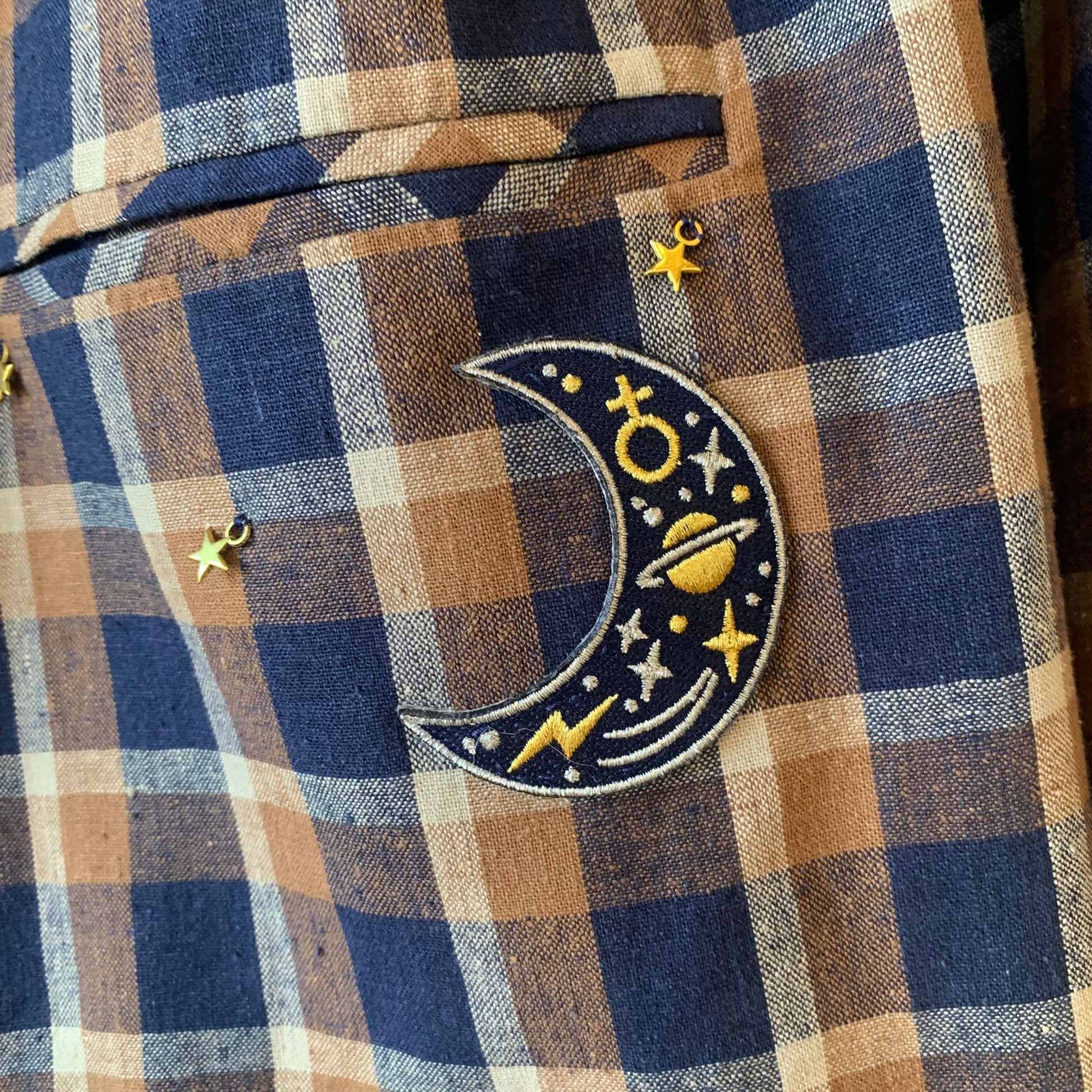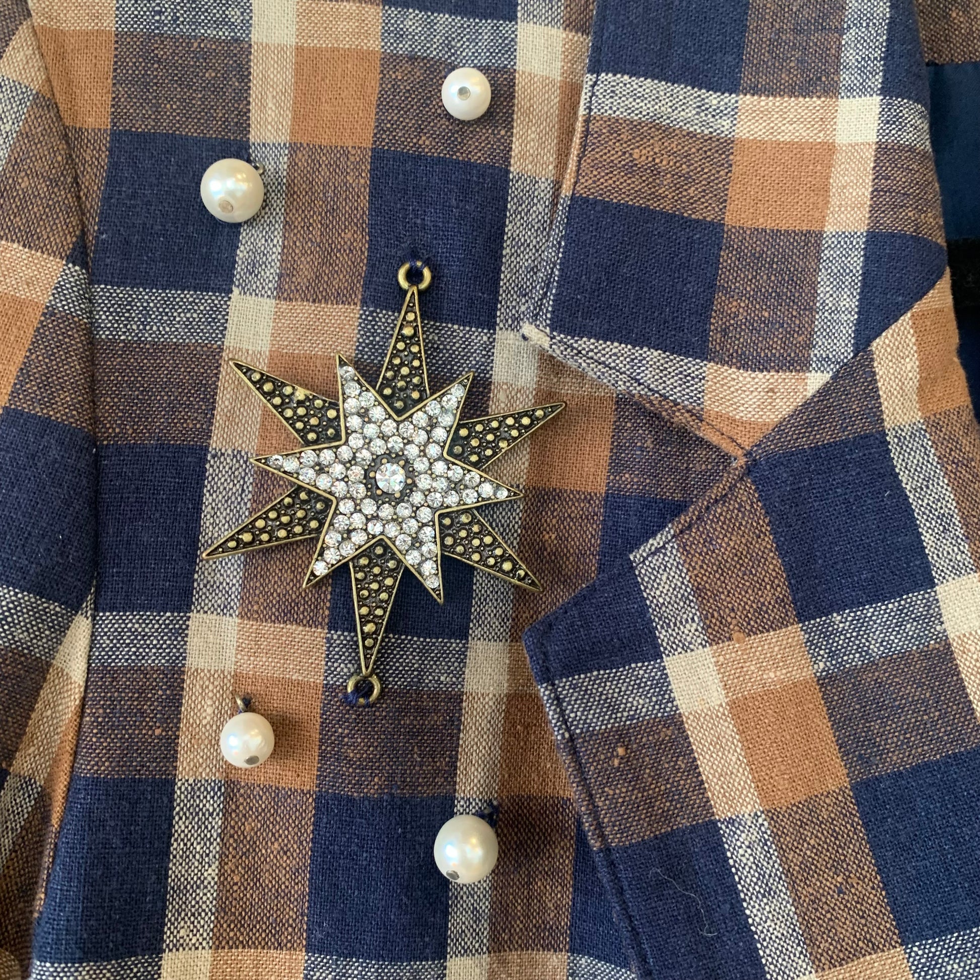 Navy & Brown Check Blazer with vintage adornments
