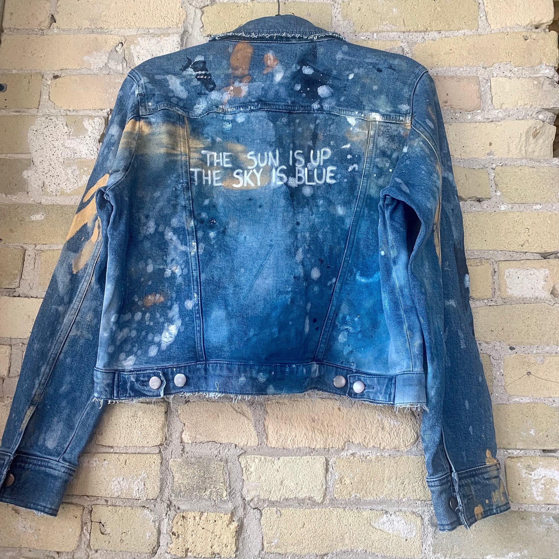 hand painted Jacket - with phrase "The Sun Is Up, The Sky Is Blue" on back