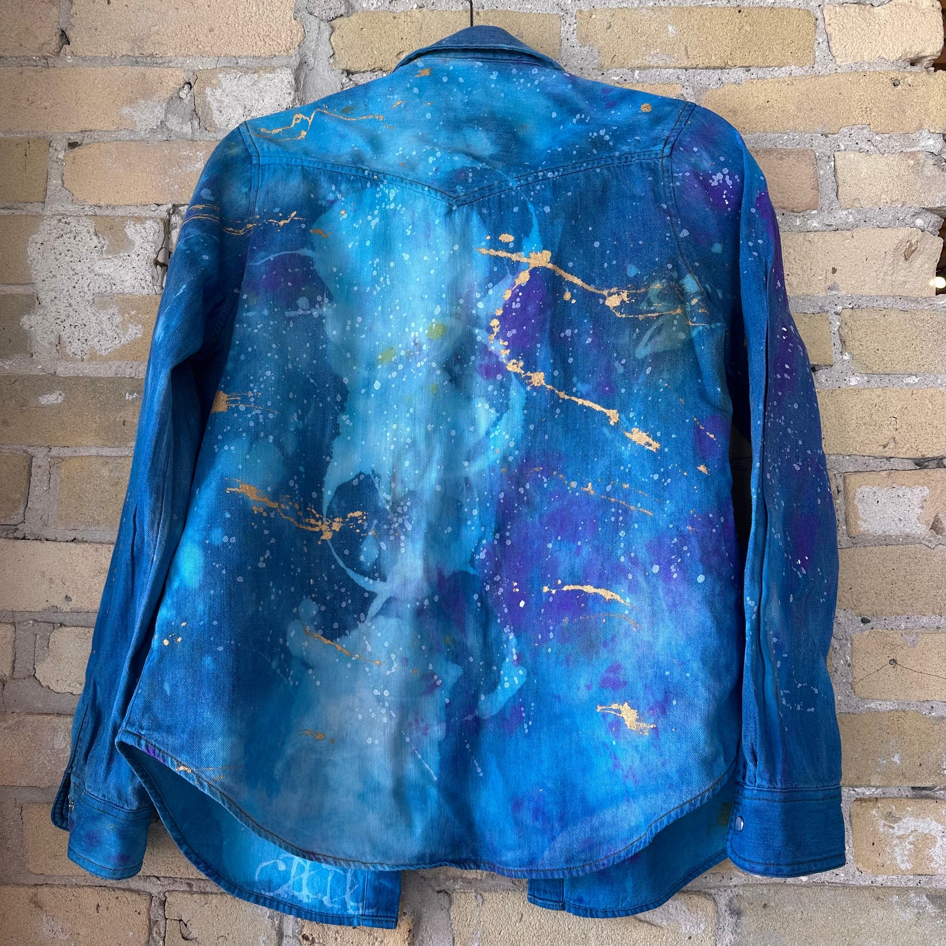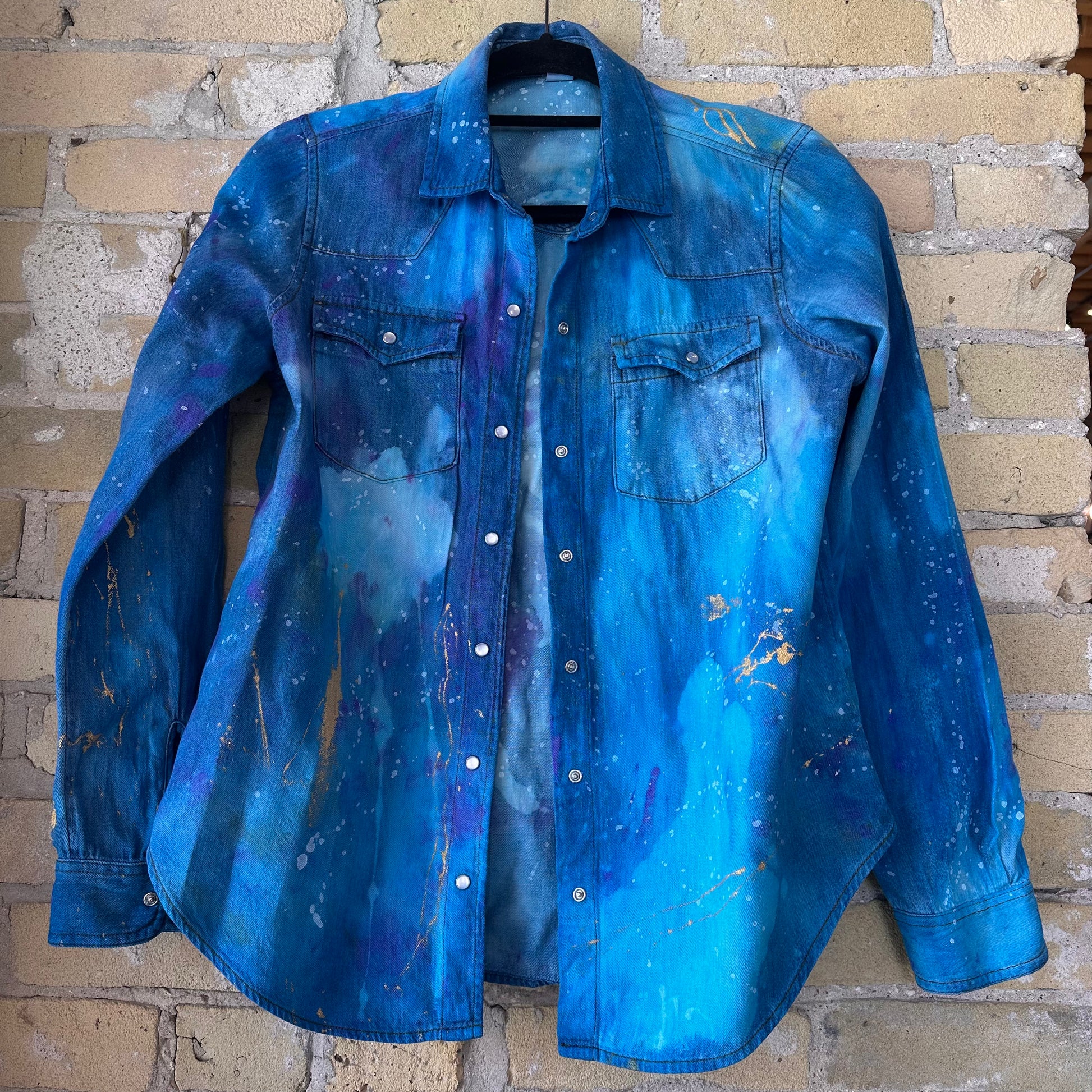 hand painted metallic denim shirt