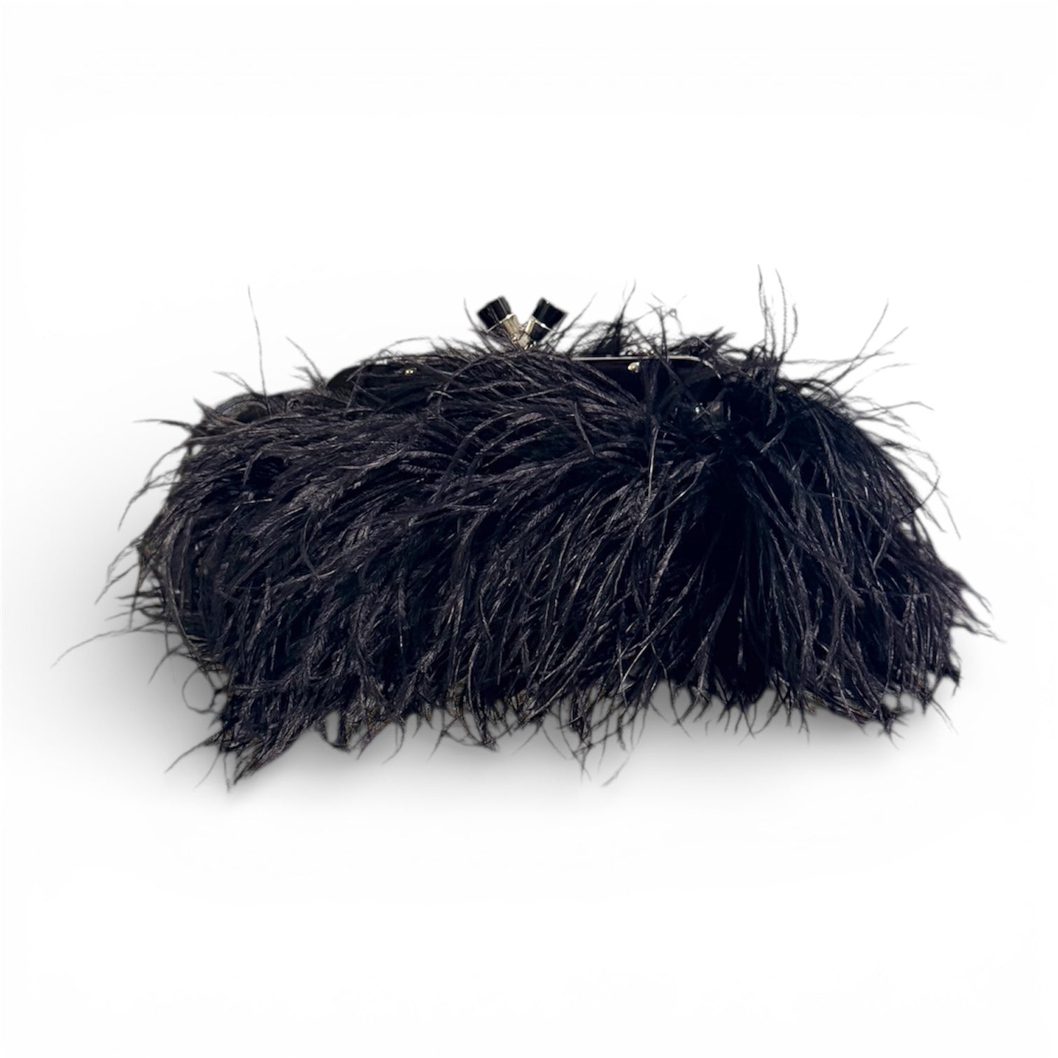 vintage black bag adorned with feathers