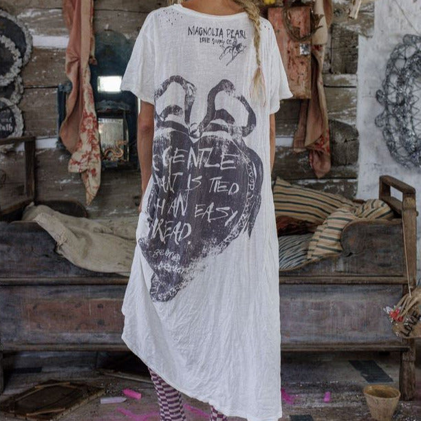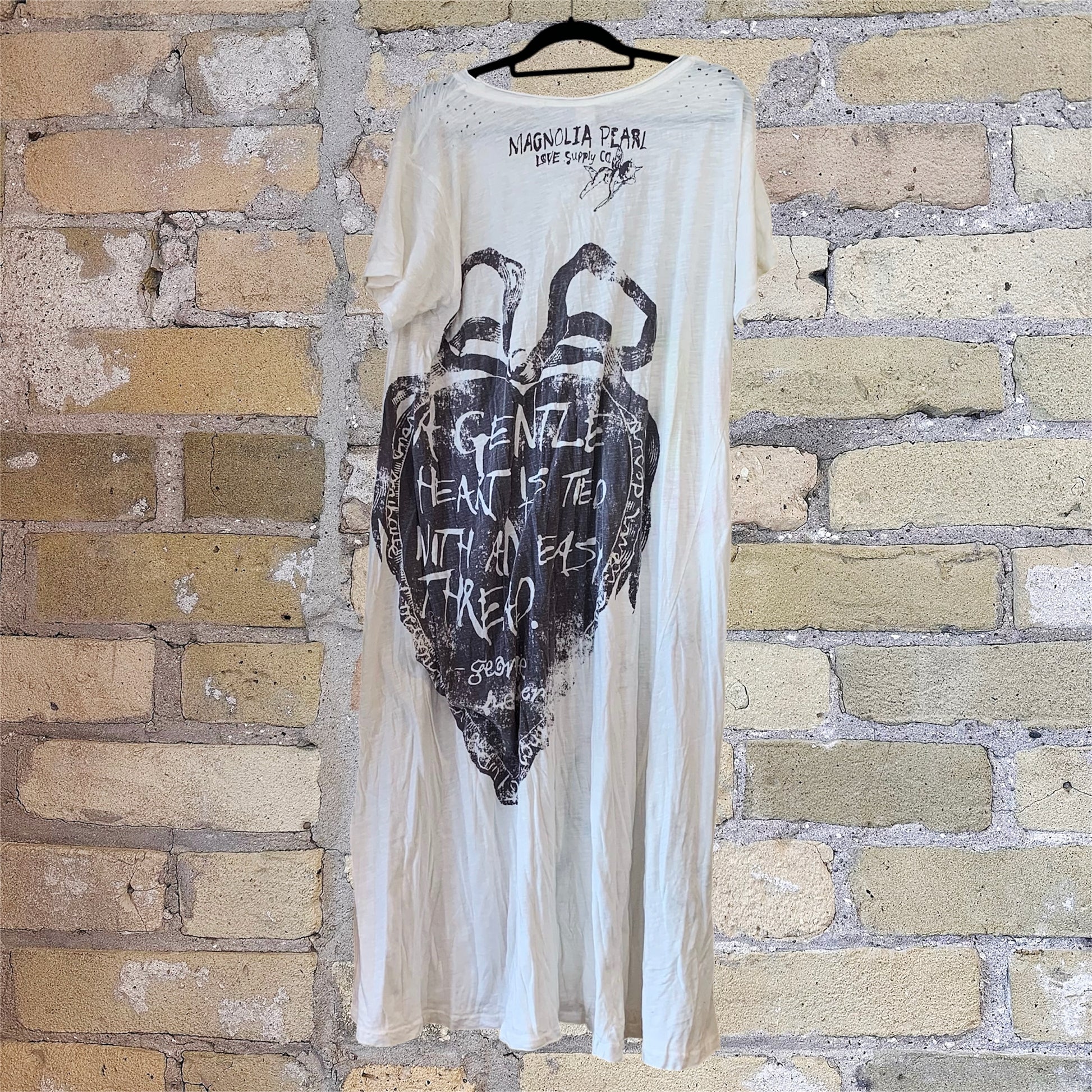 - Heart & Ribbon Graphic on Back with Quote, "A gentle heart is tied with an easy thread. - George Herbert"