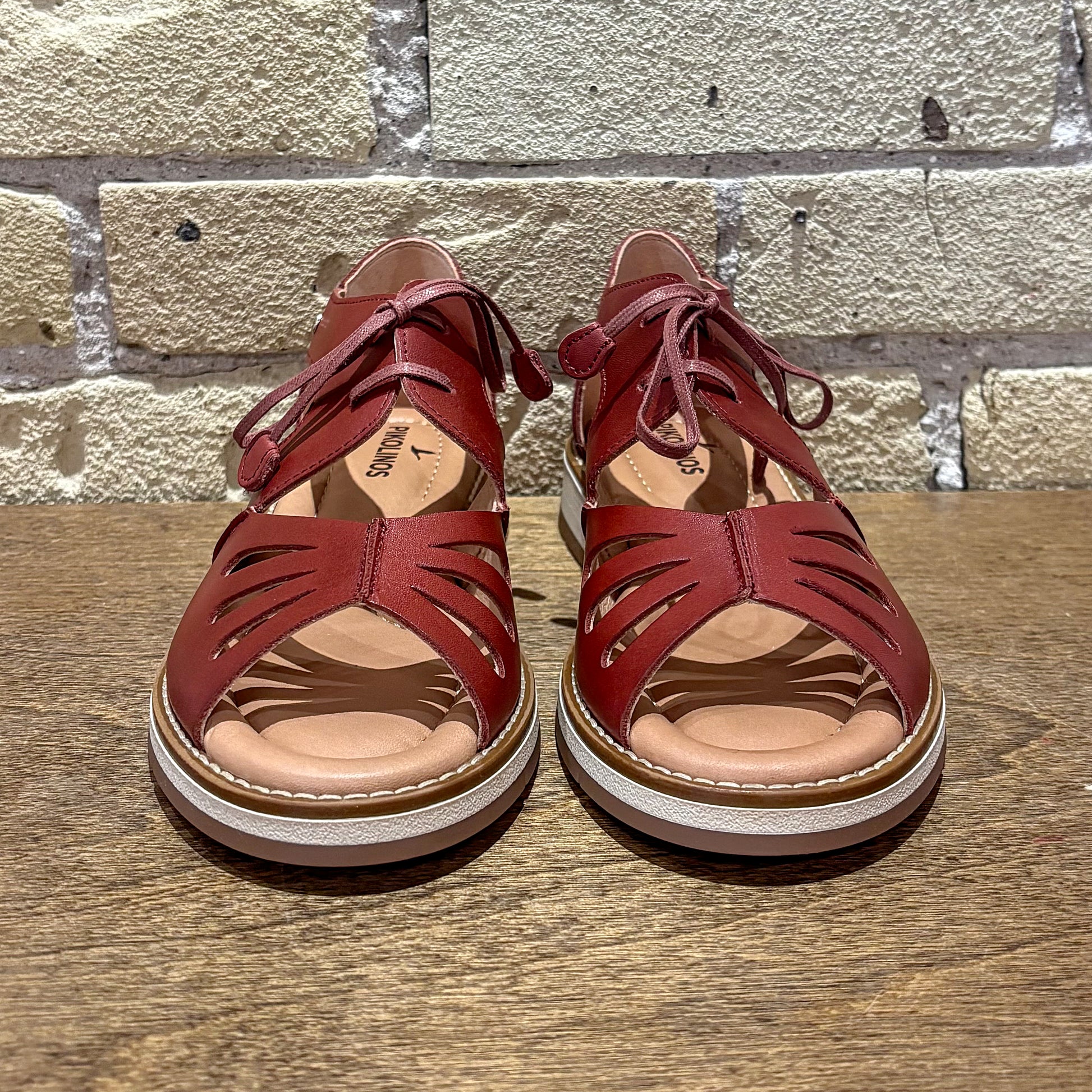 The ROQUETAS flat sandal in sandia are the perfect choice for seeking comfort without compromising on style. With a cushioned insole, every step feels like walking on clouds. The lace-up closure not only adds a modern touch but also ensures a perfect fit, allowing you to enjoy your days with complete freedom. Their versatile and casual design accompanies you on every urban adventure, making them an essential staple in your wardrobe.