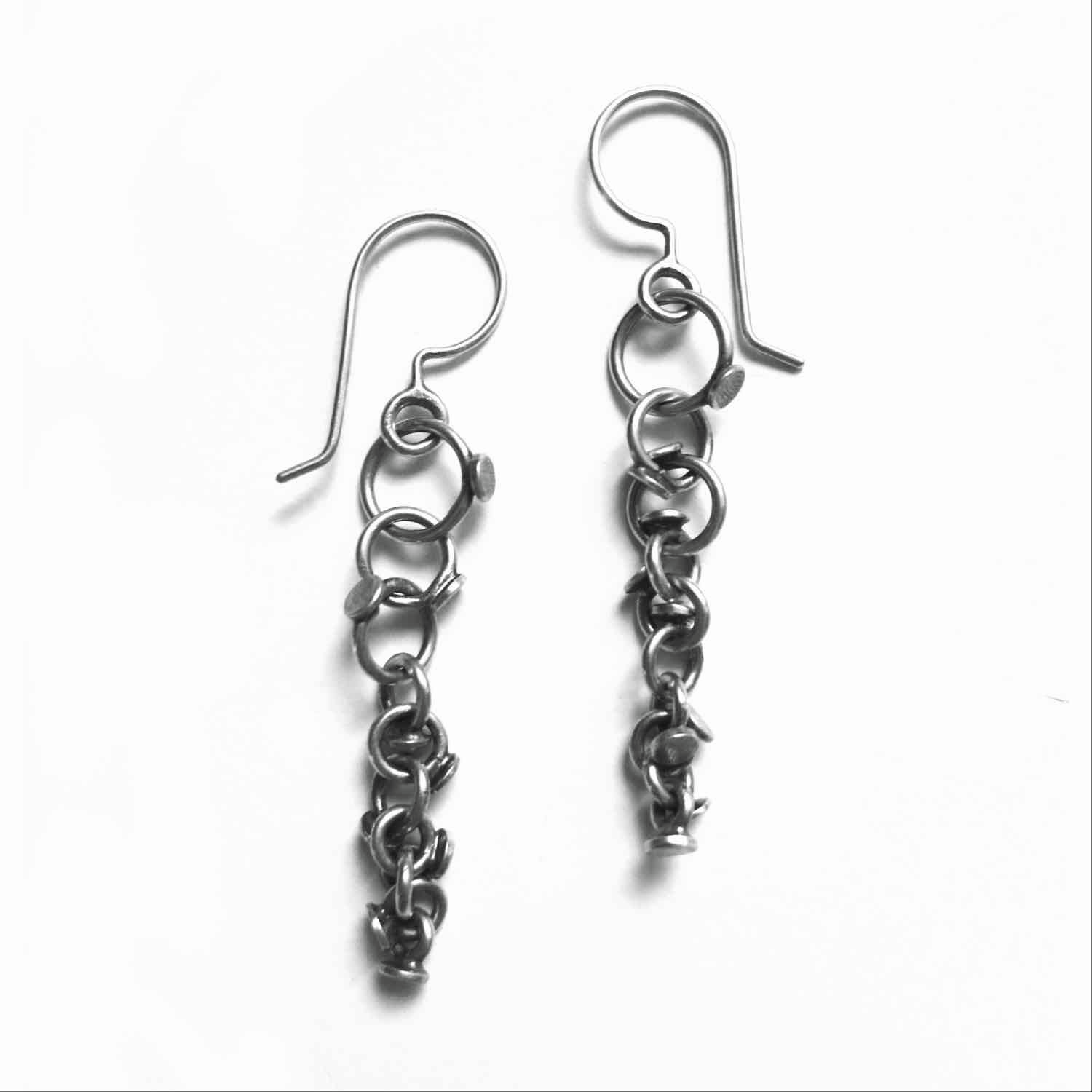 MINI E6 - Sterling silver earrings with sanding disk texture on dots (1 1/2" long not including ear wire)