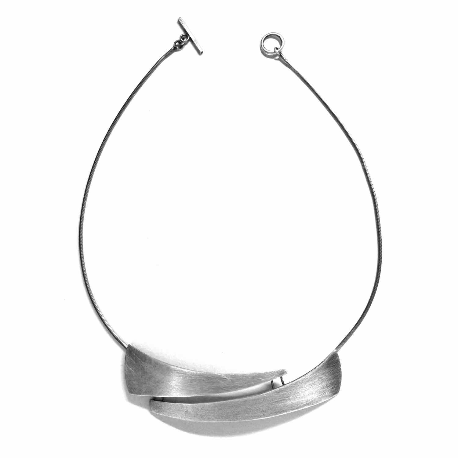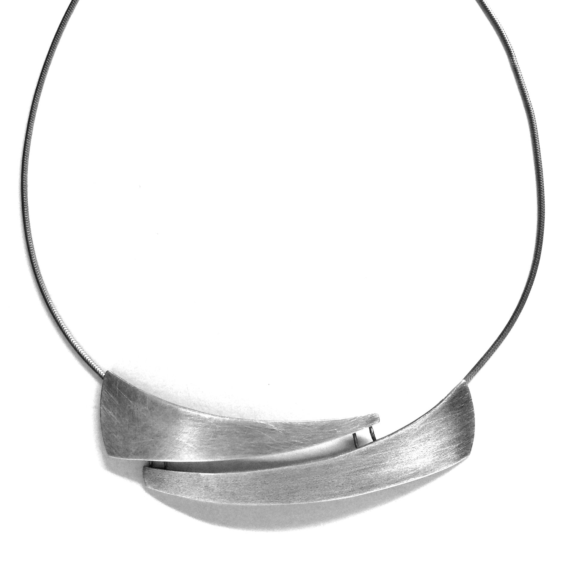 WEDGE N45 - sterling silver necklace with sanding disc texture on top wedge and mizzy on bottom wedge