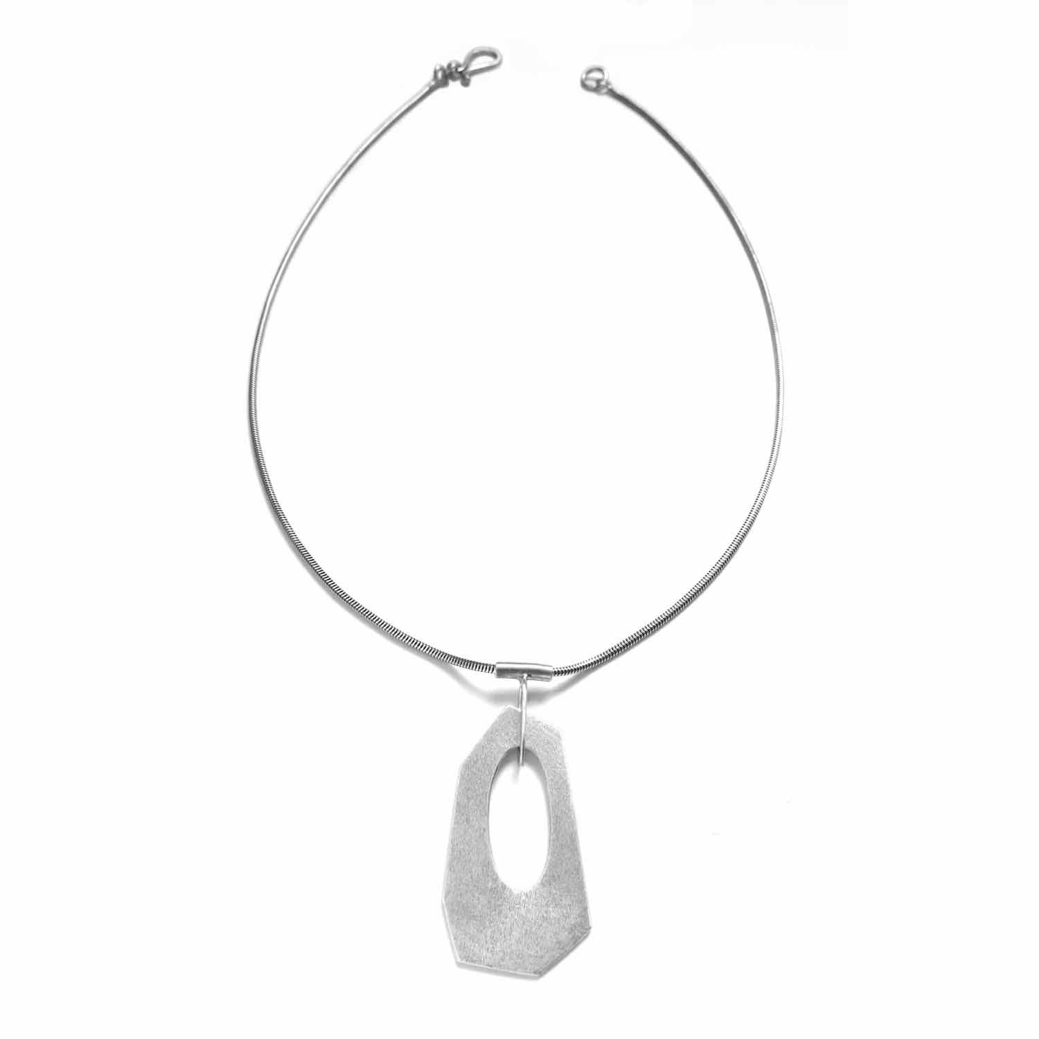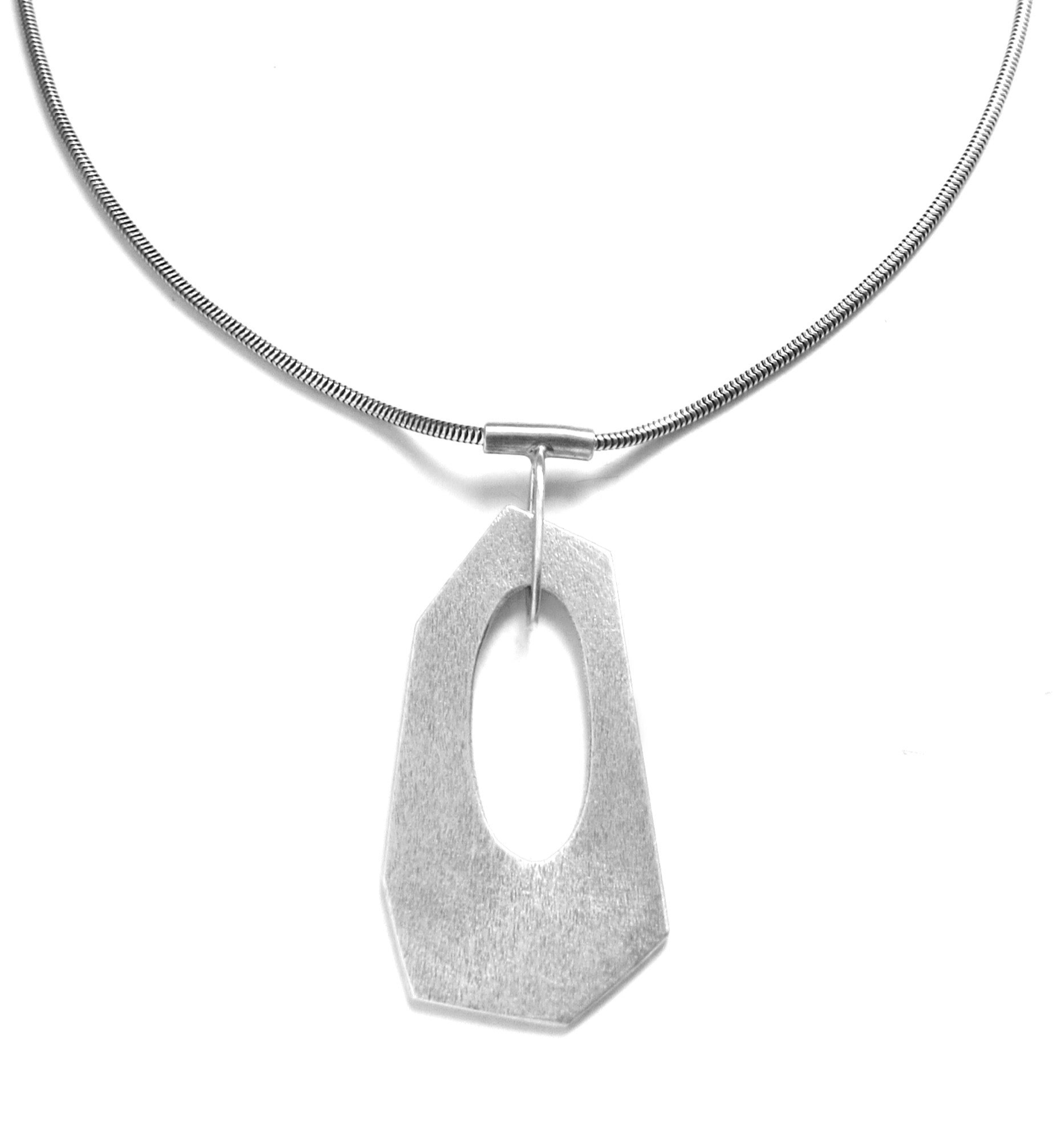 SHAPE N7 - sterling silver necklace with mizzy texture on one side and sanding disk texture on the other