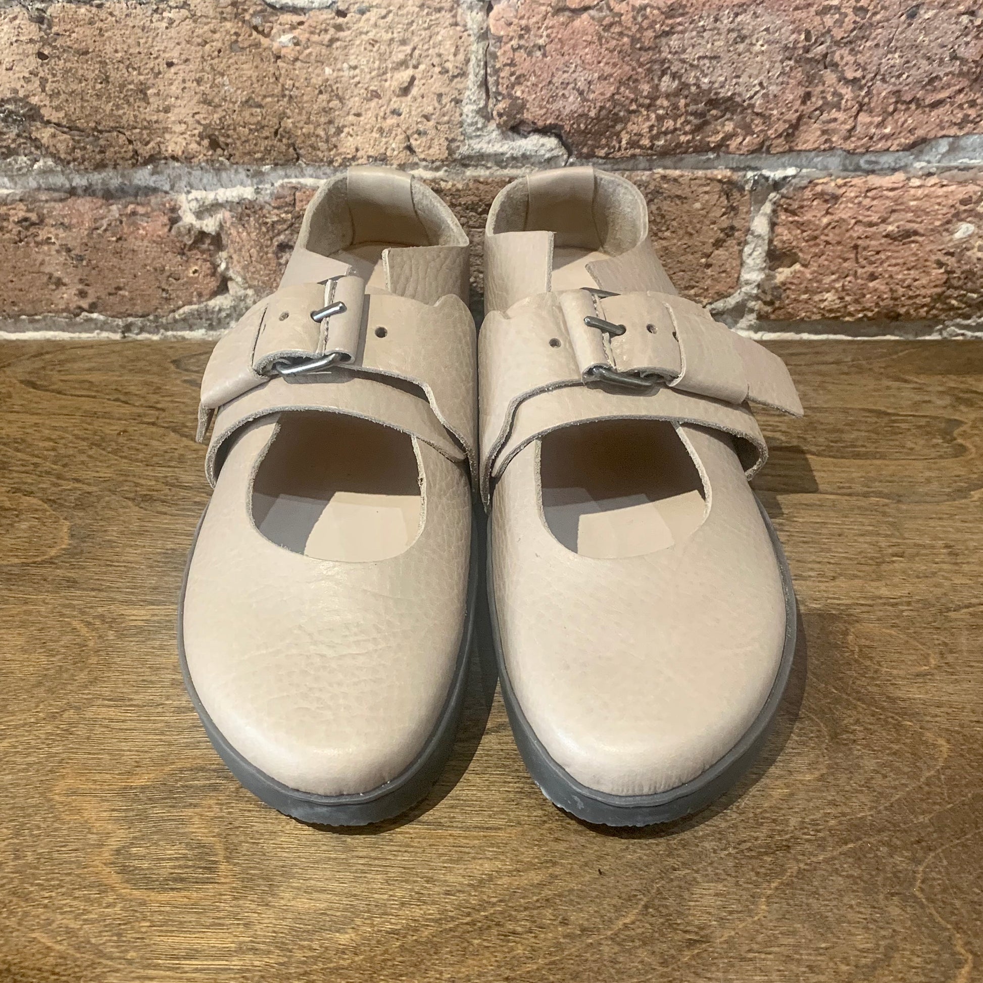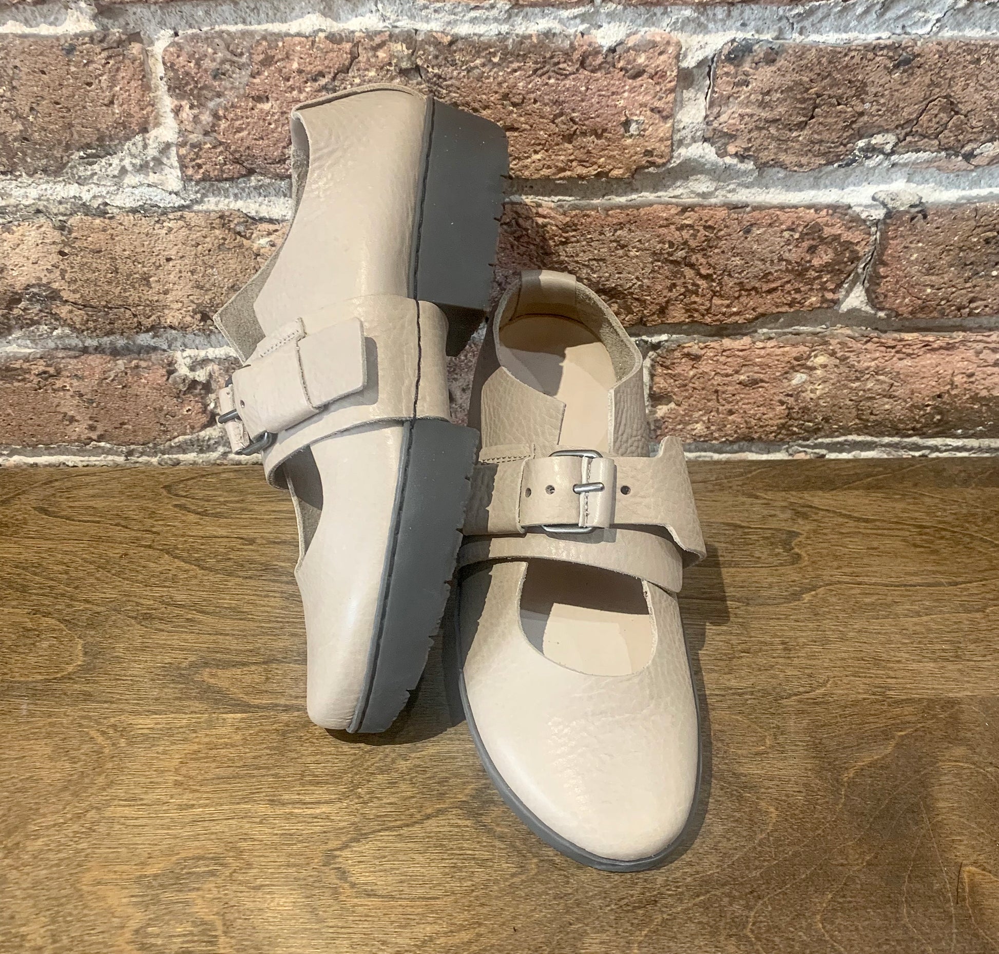 Tan leather Mary Jane with buckle strap on Sport block sole